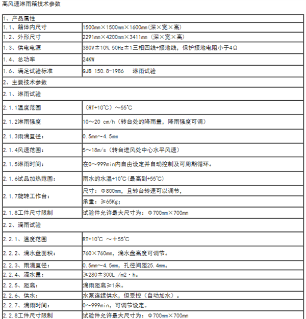 高風速淋雨試驗箱: