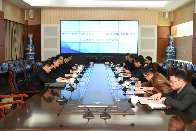 在雙方與會人員的共同見證下,牟曉巖總經理、周長進總經理分別代表城建集團與中鐵十四局集團簽訂戰(zhàn)略合作協(xié)議,標志著雙方建立起更加深入的戰(zhàn)略合作伙伴關系。